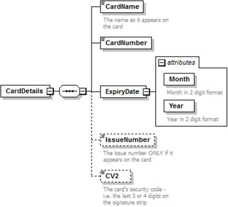 This describes the CardDetails child node of the root PaymentMessage node