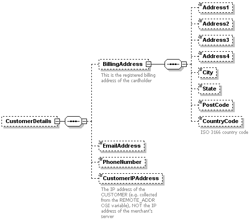 This describes the CustomerDetails child node of the root PaymentMessage node
