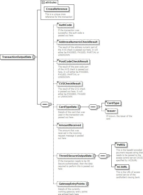 This describes the TransactionOutputData child node of the root CrossReferenceTransactionResponse node