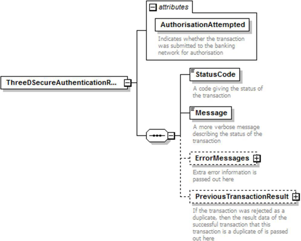 This describes the ThreeDSecureAuthenticationResult child node of the root ThreeDSecureAuthenticationResponse node
