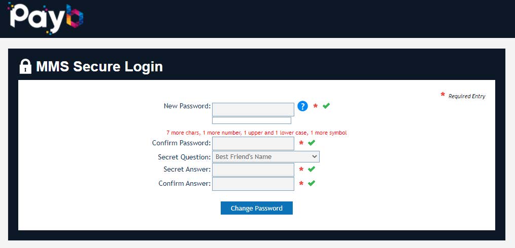 Please note that you will be required to change your password every 90 days. Your secret question can only be reset by contacting The ai Corporation by email at support@payb.co.uk or by calling